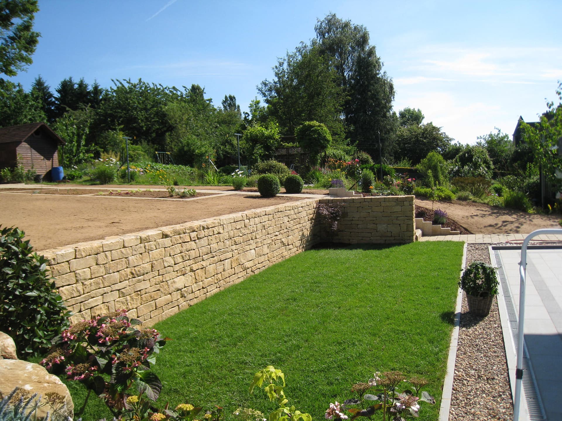 Nous réalisons tous types de travaux pour vos extérieurs, des plus petits aux plus conséquents : pose d’une boîte aux lettres, de bordures, de clôtures et palissades, construction de murs en maçonnerie, en béton, pose de gabions, création de chemins…