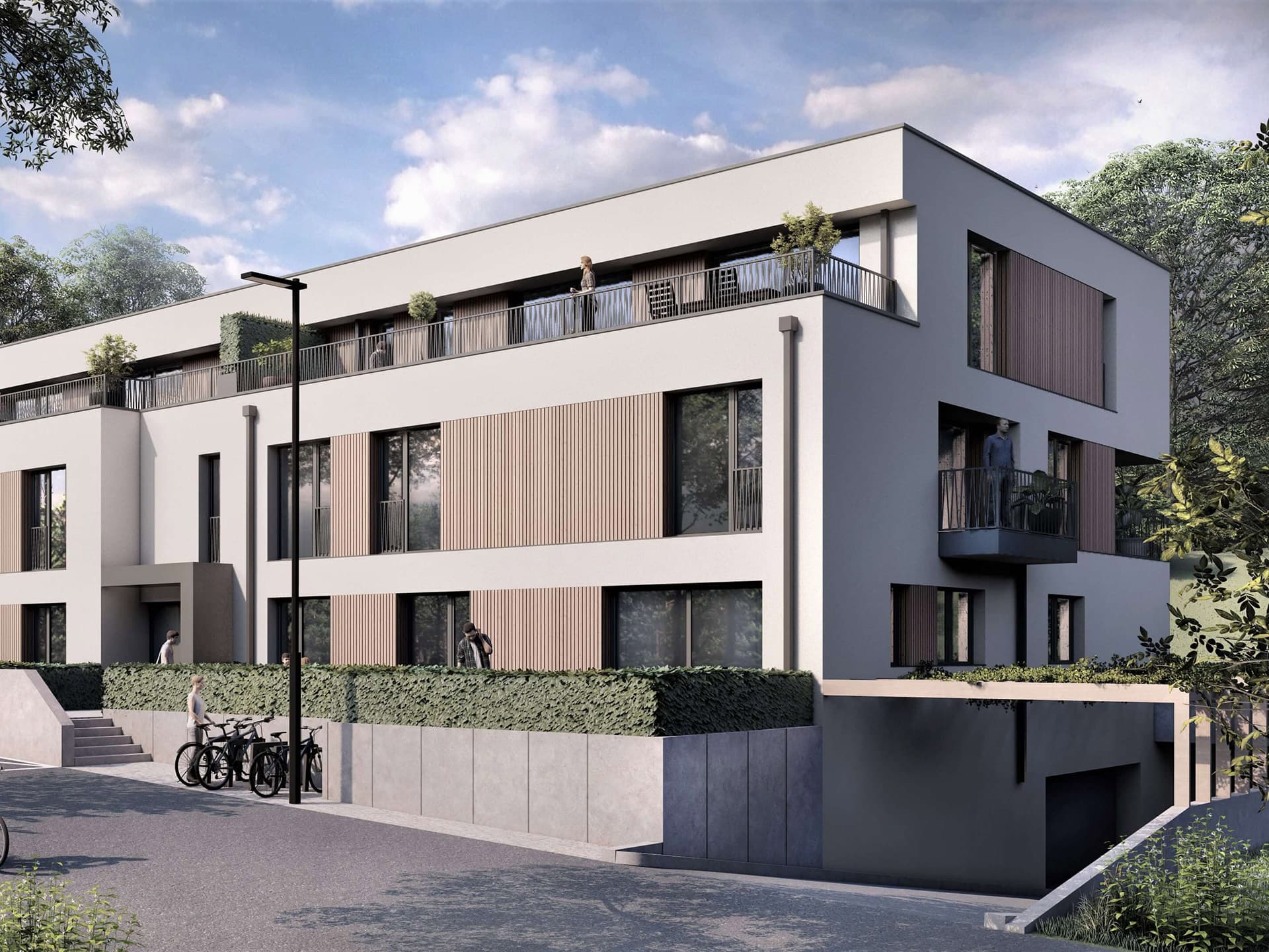 Résidence à l’allure moderne composée de 11 appartements et d’une crèche au rez-de-chaussée.